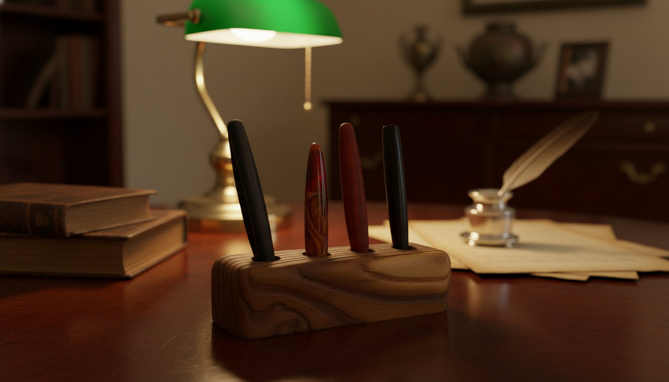 Elevate your workspace with this exquisite pen holder, beautifully crafted from rich berry wood. Its natural grain and warm tones bring a touch of timeless elegance to any desk.