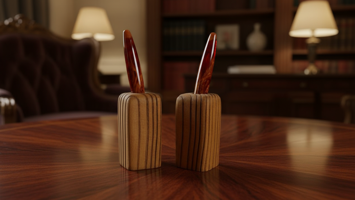 Enhance your desk organization with our Pen holder made of elderwood. Made from premium Russian Olive wood, this pen holder combines natural elegance with practicality. Its warm tones and distinct wood grain bring a refined, organic touch to any workspace, while the sturdy construction ensures long-lasting use. Perfect for students, professionals, and creatives who seek stylish and functional desk accessories that stand out.