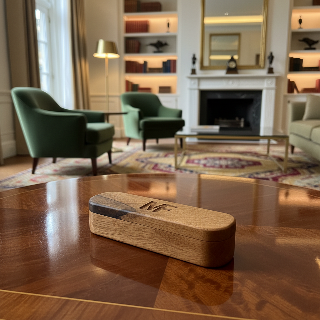 Organize and display your pens in style with our Walnut Wood Pen Box. Made from rich, natural walnut wood, this elegant box combines timeless beauty with practical functionality. The deep, warm tones and unique grain patterns of walnut add sophistication to any desk, while the sturdy construction ensures long-lasting durability. Ideal for pen collectors, professionals, or as a luxurious gift, this pen box offers both elegance and reliable protection for your writing instruments.