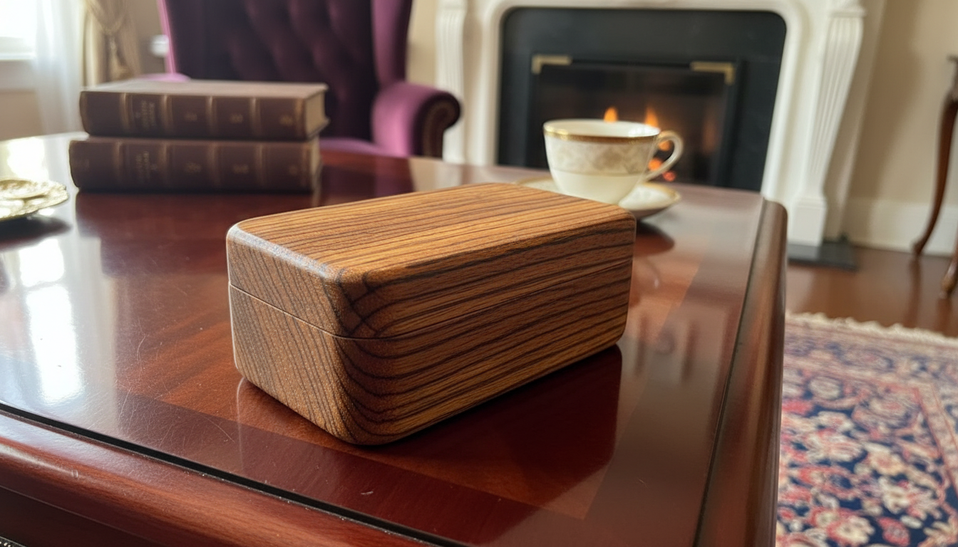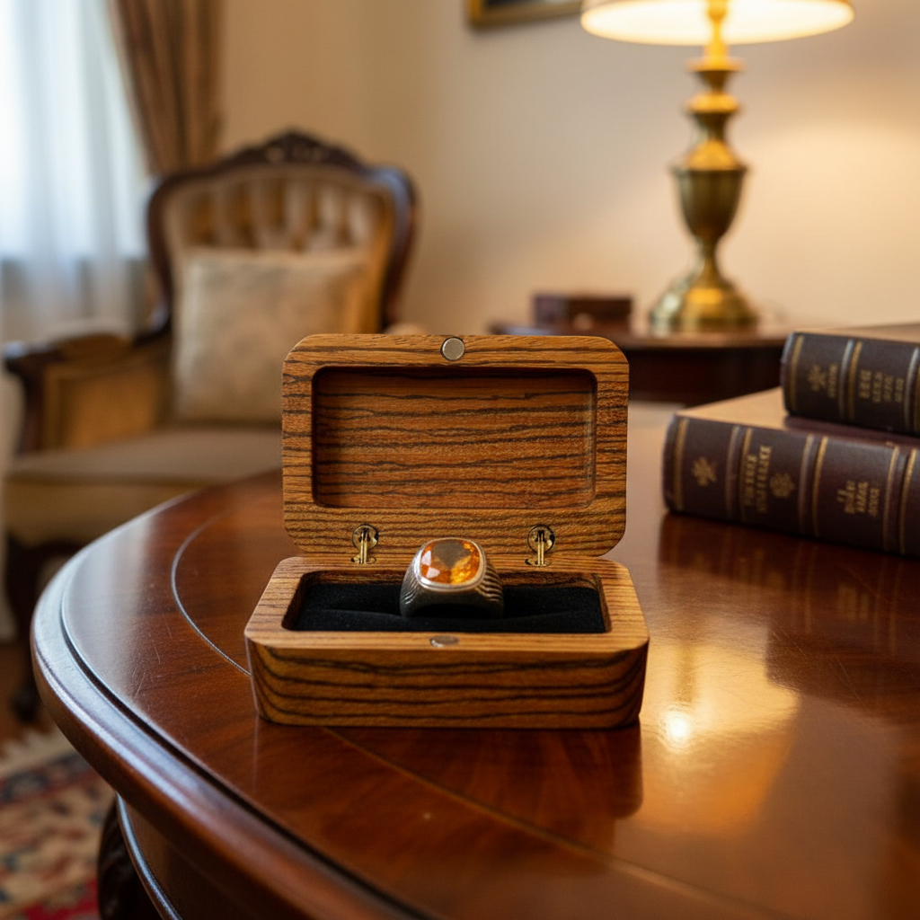 Showcase your precious rings with our Zebrano Wood Ring Box. Made from striking Zebrano wood, known for its bold, contrasting grain patterns, this elegant box combines visual impact with practical design. The polished finish enhances the natural beauty of the wood while protecting your rings, making it perfect for gifts, special occasions, or personal use. A stylish and durable choice for anyone who values both aesthetics and functionality in jewelry storage.